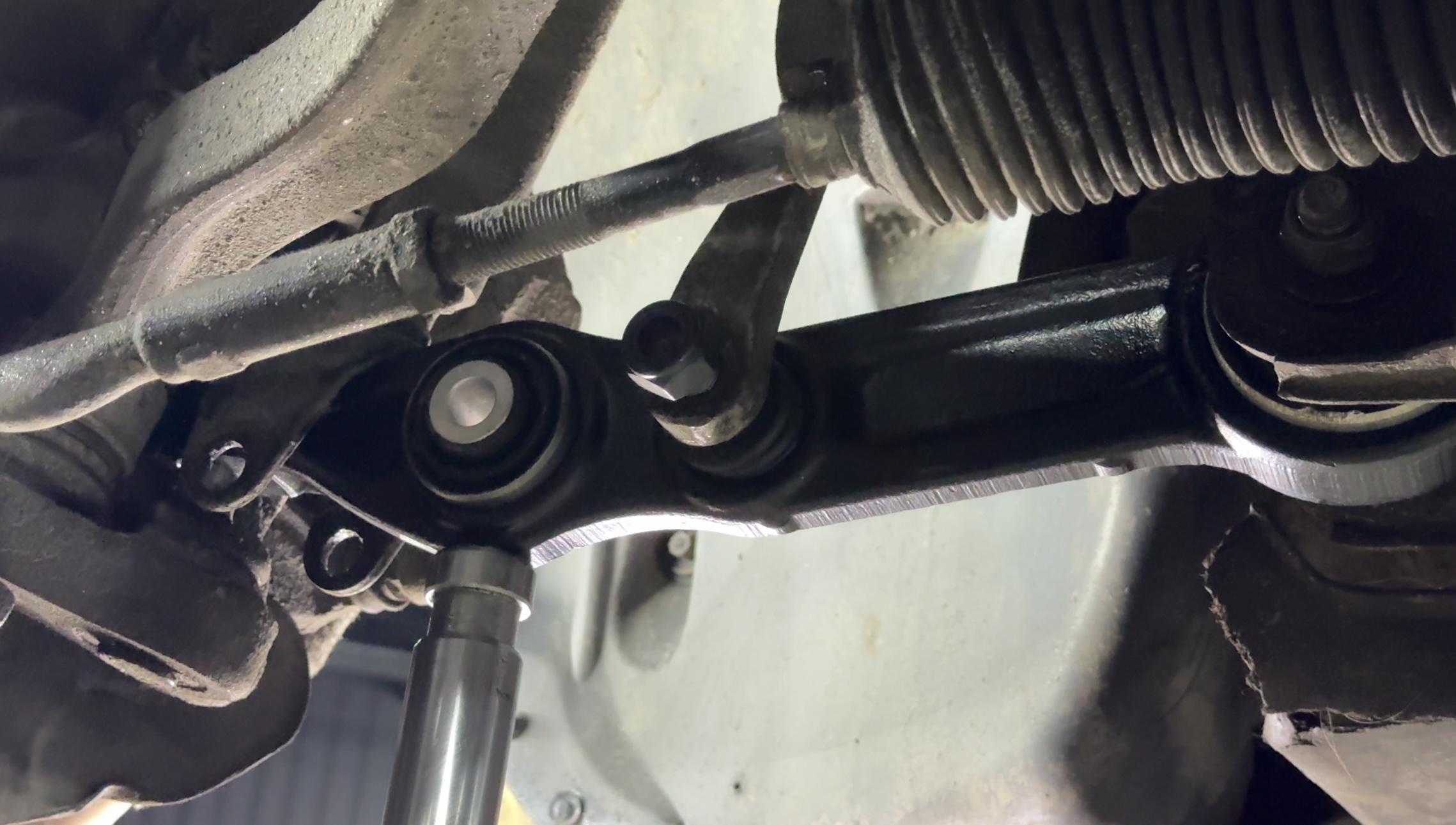 - Установка: Устанавливаем новый рычаг. Сначала наживаем болты сайлентблоков, затем закрепите шаровую опору.