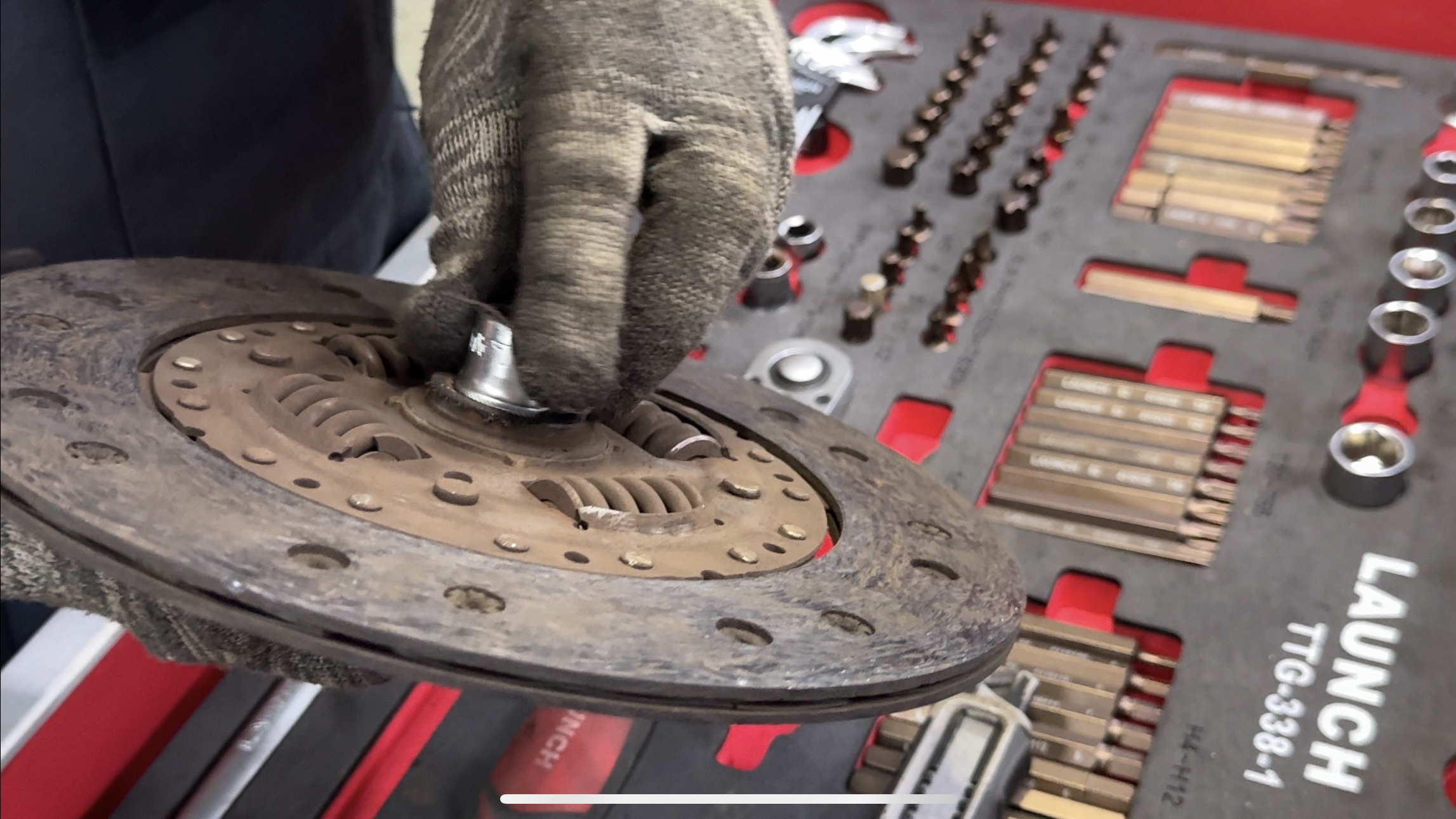 - Замена деталей: Демонтаж старой корзины и диска сцепления, замена выжимного подшипника.