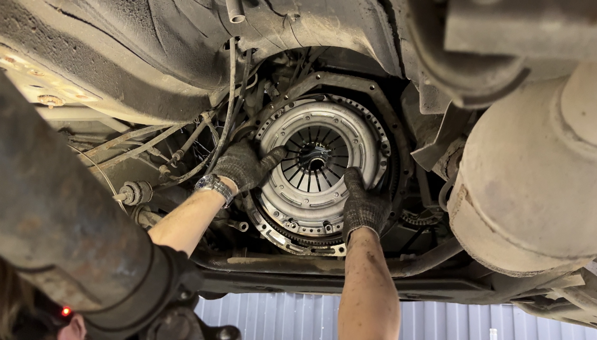 Для начала наши мастера осмотрели автомобиль - внешних повреждений не обнаружили, утечек также не было. Приняли решение снять КПП и осмотреть диск сцепления. Так было выявлено, что диск сцепления очень изношен и требуется его замена.
